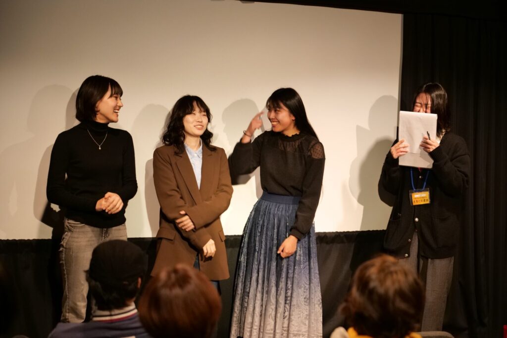 舞台挨拶や上映後のロビーでの会話は、制作した学生とお客様の交流の場になりました。